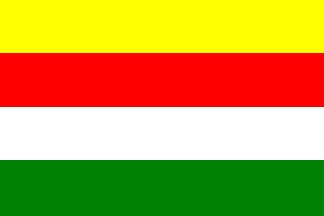 The flag is horizontally divided yellow-red-white-green.