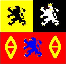 One contemporary drawing shows a flag containing the lion of Flanders, the lion of Ghent and a third lion which has at its sides two golden netting needles. The lion is blue, on a red field, its tongue and nails painted gold. This flag probably belonged to the Guild of Weavers in Ghent.