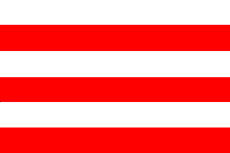 The flag is horizontally divided white-red-white-red-white-red. Proportions are 2:3.