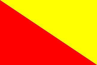The flag of Beloeil is diagonally divided yellow-red. It was adopted on 18 December 1991.