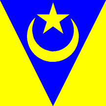 Or on a Pile inverted issuant from chief Azure a Mullet of Five and Crescent of the first.