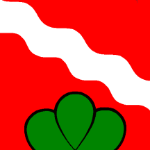 Gules a Bend wavy Argent over a Mount of 3 Coupeaux Vert.