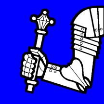 Azure an Arm armoured Argent issuant from sinister holding a Sceptre of the same.