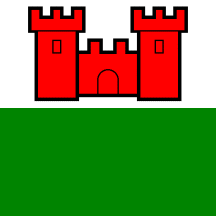 Per fess Argent a Castle Gules and Vert.