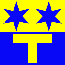 Per fess Or two Mullets Azure and of the last a Tau Cross couped of the first.