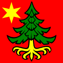 Gules a Fir Tree Vert trunked and eradicated Or and in chief dexter a Mullet of the same.