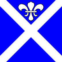 Azure a Saltire Argent and in chief a Fleur de lis of the same.