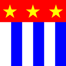 Paly of Six Argent and Azure and on a Chief Gules three Mullets of Five Or.