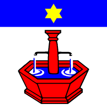 a Fountain proper Gules and in Chief Azure a Mullet Or.