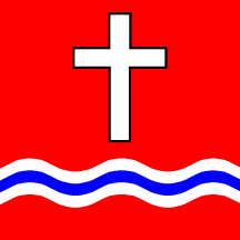 a Latin Cross Argent and in base on a Bar wavy of the last a