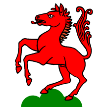 Argent, on Coupeaux Vert a Horse rearing Gules.