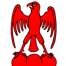 Argent, a Falcon displayed Gules stantant on Coupeaux of the same.