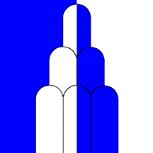 Per pale Azure and Argent, Coupeaux of five counterchanged.