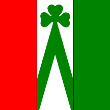 Trierced in pale, Gules, Argent a Chevron trefoiled Vert and of the last.