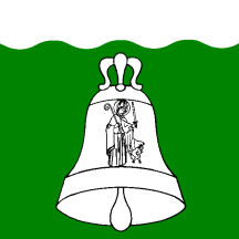 Vert, Chief wavy Argent, a Church-bell of the same lined Sable, picturing a Saint.