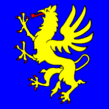 Azure, a Griffin rampant Or langued and armed Gules.