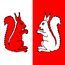 Per pale Argent and Gules, two Squirrels counterchanged.