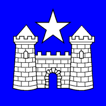 Azure, a Castle Argent, in chief a Mullet of Five of the same.