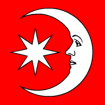 Gules a Mullet of Eight and a Crescent Moon in her decrement all Argent.