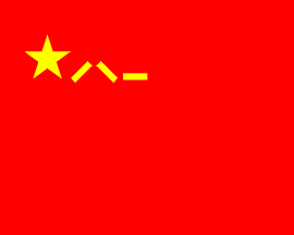 The flag of the armed forces of the People's Republic of China (the People's Liberation Army) is red with a golden star in the upper hoist, but the star is smaller than on the national flag. Next to the star are three small lines, the Chinese numerals for "8" and "1", which stand for "August 1", to commemorate the establishment of the PLA in 1928, after the Nanchang Uprising (Crampton, The World of Flags, 1990, p.28). W. Smith adds that the star represents the victories of the Army in the fight against foreign imperial forces and unification of the land.