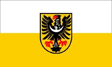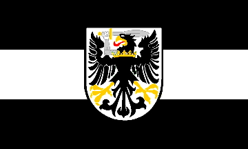 Possible administrative flag. Like Lower Silesia 1920-1935, but with coat of arms, consisting of a silver field with a black Silesian eagle (with cross and crescent pattern on breast), at the center.