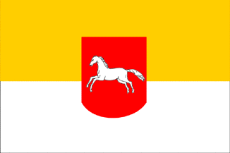 Possible administrative flag. Yellow-white bicolor with Hanover arms (white horse on red field).
