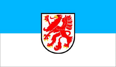 Possible administrative flag. Like Pomerania 1882-1935, but with Pomeranian arms (red griffin in silver field) in center.