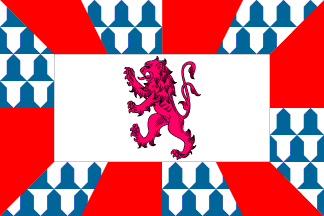 The flag reported by Dov Gutterman in a commercial site corresponds to a town called Cuadros. Cuadros is a small municipality of the Province of Leon (Castile and Leon), 15 kilometres north of Leon city. The flag is white with a purpure lion, bordered by six pieces of red and six of vair. The flag dates from 1996.