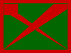 The flag of Kanemitsu - it's seen as a carflag in some scenes and it's an awful flag: dark green with a dark red border all around, a sort of a pointy saltire and a small canton with nothing on it, all red, at least according to my notes.