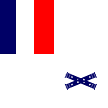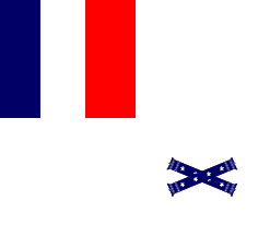 Since there is no Maréchal de France still alive, the flag is prescribed but not in use. It is a square white field with the French Tricolore in canton and two crossed blue marshal's batons in lower fly.