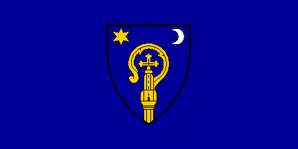 for cities and communities, the flag is blue with the coat of