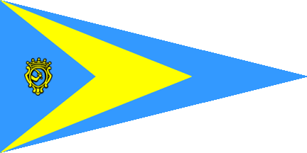 light blue burgee with yellow arrowhead (like in Guyana flag) and the coat of arms of Makarska