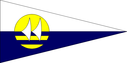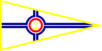 white burgee bordered yellow with a blue gemmeled cross tunred to