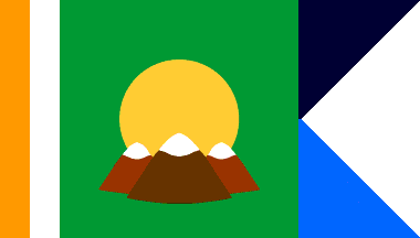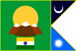by Thanh-Tâm Lê This is an image of "the" Uttarakhand flag found by Bear Explorer/Navigator. As the different variants show slightly different shades, I chose a version where colours are plain but clearly differentiated, especially for the mountains.