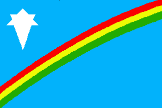 The Flag of Nagaland is in Smith's book, background light blue with a "rainbow" of red, yellow and dark blue; the sixpointed star have six lines like a rays. By my research (exchanges with Zing Zing Awungshi Shisha and the Catalan Commitee of Solidarity with the South East Asian Peoples, and a friend that was in the region two years ago) the rays are not on the flags flown there, and the rainbow is red, yellow and green.