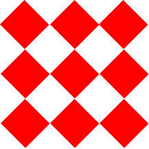 The burgee is a square white flag with three rows of three square diamonds each.