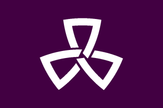 White coat of arms on dark violet field.