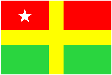 symbolism of the flag is: the flag uses the Pan-African colours, the cross represents christianity,
