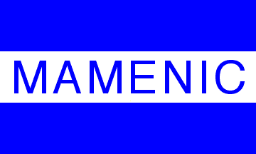 The flag is horizontally divided blue-white-blue with MAMENIC