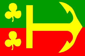 at one third of the hoist; in hoist-top and -bottom a yellow clover-leaf.