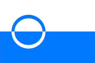 "Two equally wide horizontal stripes of white and blue, with a countercharged