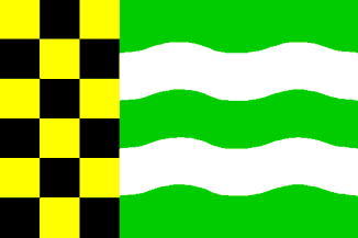 The flag is a nice adaptation of the municipal CoA; the waves stand for the water of the 'vorde' (ford) in the Vordense beek. The checky