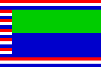 [sie62] Sierksma 1962 describes this as: 21 horizontal stripes red-white-blue, of which 15 in the fly are occupied by a panel green over blue.