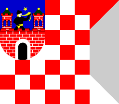 Kalisz: chequered of 49 (7 x 7) white and red, with a white canton (3