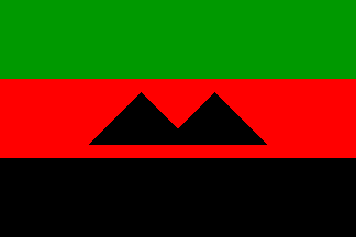 interesting flag: a horizontal tricolor of green, red and black, with a two