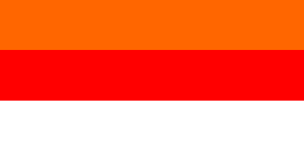 Horizontal 1:2 tricolor of dark orange - red - white, as