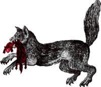 arms of argent a panther, running on green grass holding a sable in its jaws.