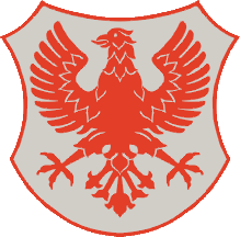 The coat of arms is based on the coat of arms from a seal of 1530. It is made of a shield with a spread-winged eagle. The outline of the shield and the eagle is red (cinnabar red), and the field color is called cobalt-grey-black and defined as Pantone 428 c.