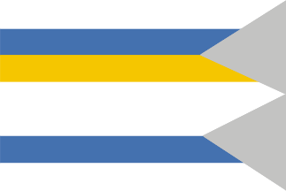 horizontal stripes 1 White, 1 Blue, 1 Gold, 2 White, 1 Blue, 1 White.