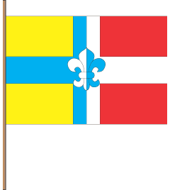 direct azure-and-argent cross, on a cross is heraldry lily in